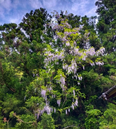 房となって、多くの花を咲かせている藤の木は、その重さに耐えながら、上へ上へと伸びていきます。