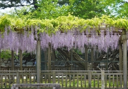 奈良の春日大社神紋にもなっている下がり藤や、藤原頼道が建立した京都の平等院鳳凰堂の藤棚などが有名ですね。